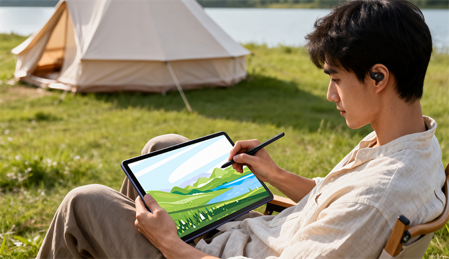 随着艺术创作不再局限于画室空间,户外采风、街头速写、旅途记录成为创作者捕捉灵感的常态,设备带来的“创作枷锁”却愈发明显:专业数位屏无法摆脱电脑与线缆的束缚,将创作空间牢牢锁定;普通消费级平板虽便携,却存在画笔需充电配对、屏幕反光打滑及色彩失真等问题。