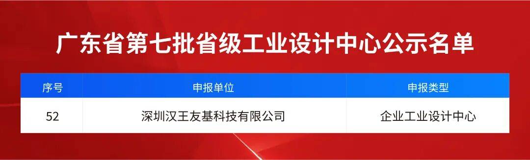 近日,广东省工业和信息化厅正式公布第七批省级工业设计中心认定名单。汉王友基凭借其在工业设计领域的深厚积淀与突出创新能力成功入选,标志着企业在工业设计创新领域的实力获得权威认可。